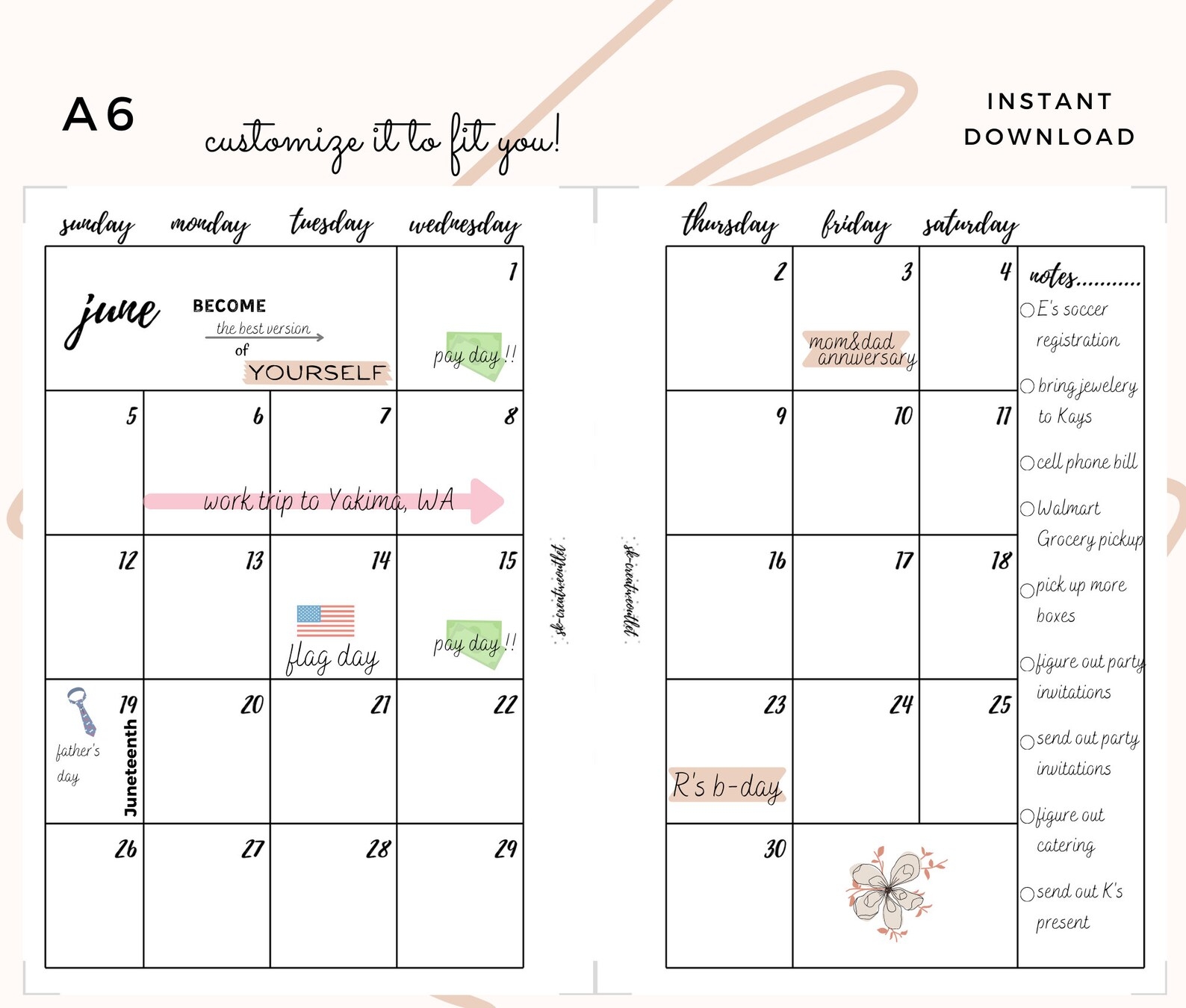 Download our 2025 A6 monthly calendar printable today and start organizing your life in a more efficient and effective way. Say goodbye to missed appointments and hello to a more streamlined schedule. With our printable calendar, staying organized has never been easier!