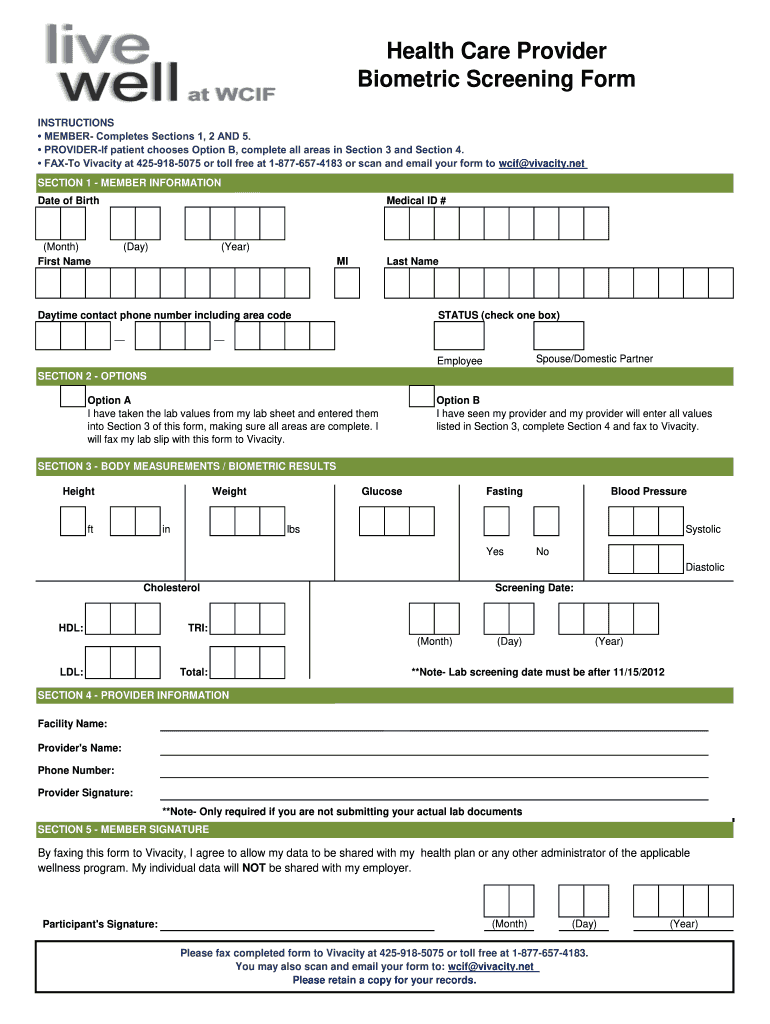 Biometric Screening Form Fill Online Printable Fillable Blank