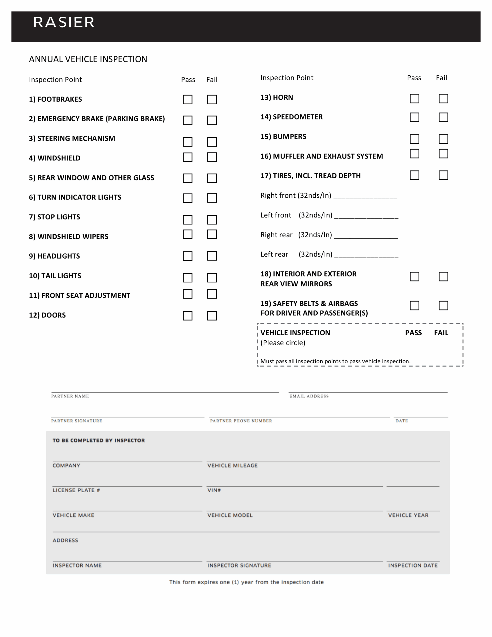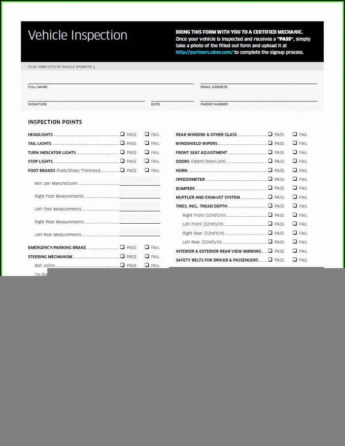 Printable Lyft Vehicle Inspection Form Printable Forms Free Online