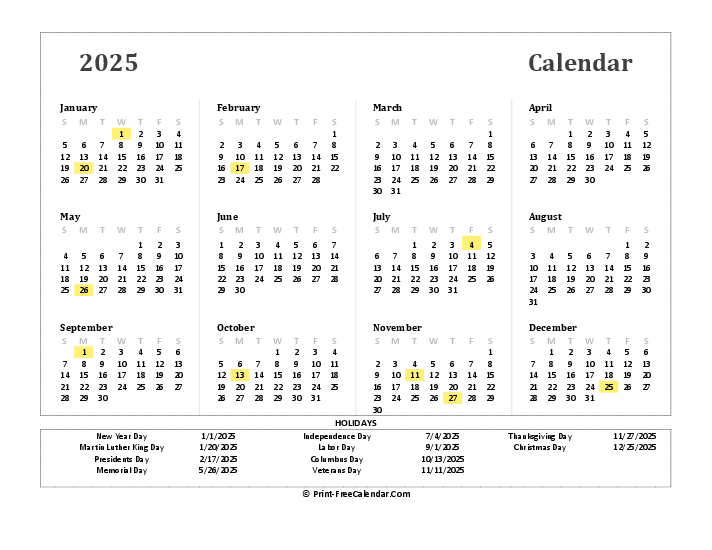 So if you’re looking for a simple yet effective way to stay organized and plan ahead for the year 2025, consider using a yearly printable calendar with holidays. It’s a practical tool that can help you stay on track and make the most of your time. Get yours today and start planning for a successful year ahead!