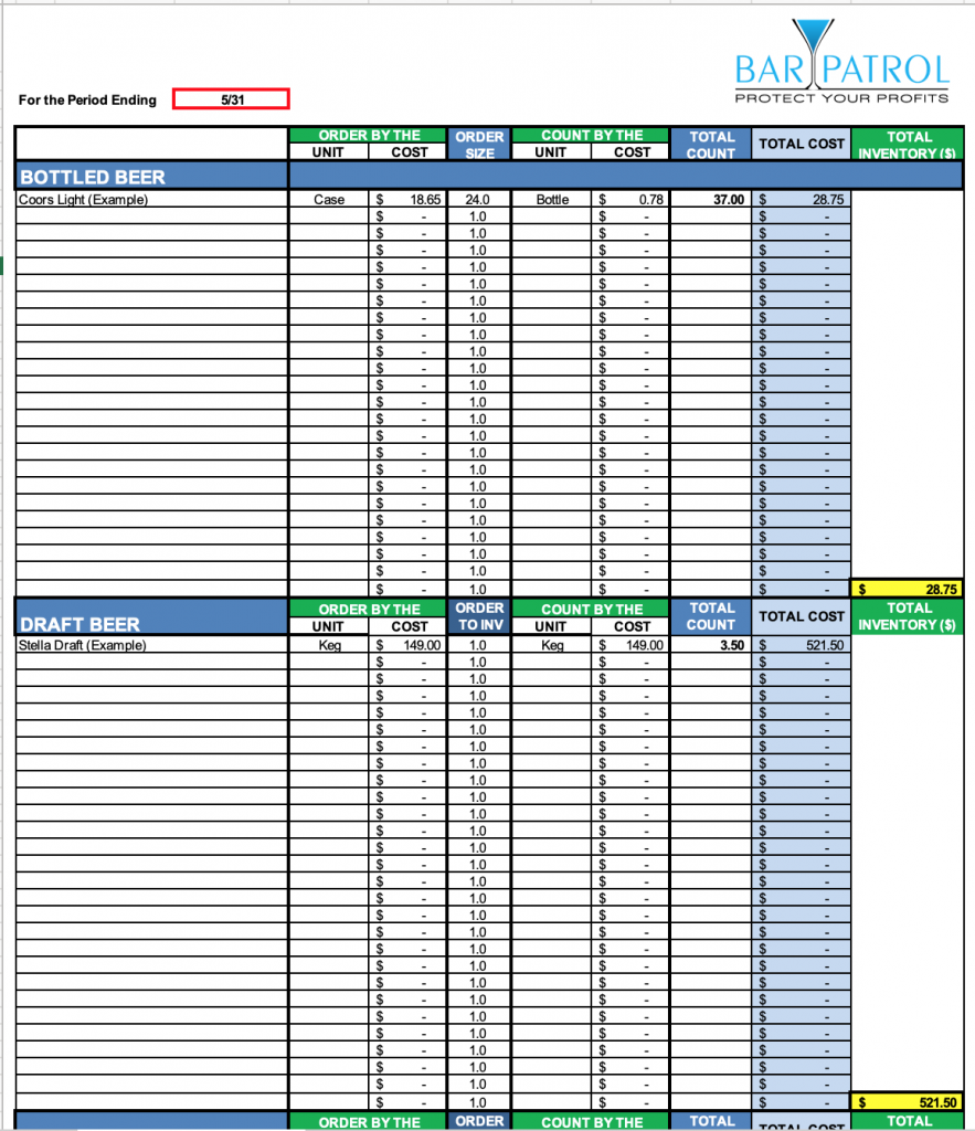Streamline Your Bar Inventory Management with a Printable Excel Template