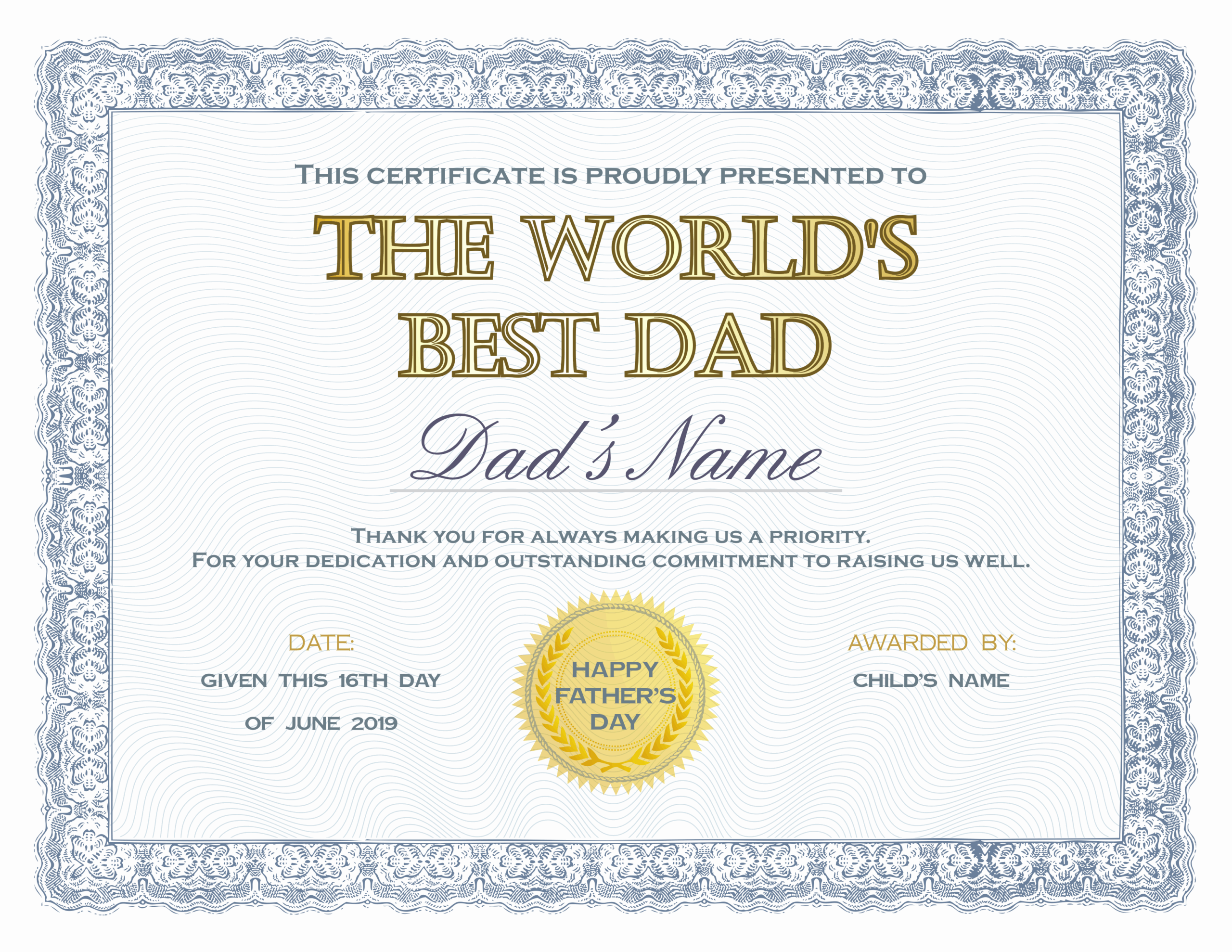 You can choose to frame the certificate for a more polished presentation or simply hand it to your dad as is. Either way, he’s sure to appreciate the time and effort you put into creating such a thoughtful gift just for him.