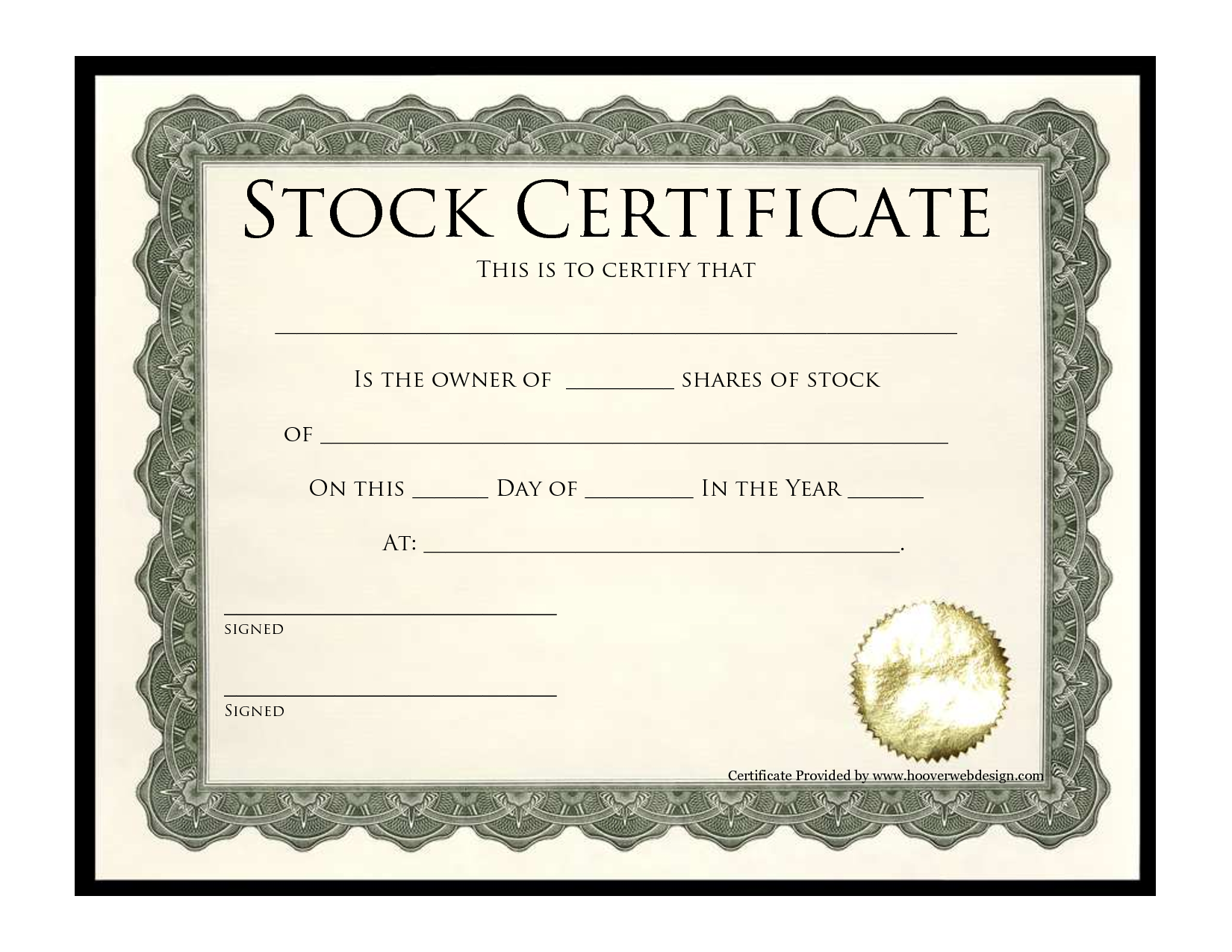 Blank Printable Stock Certificate
