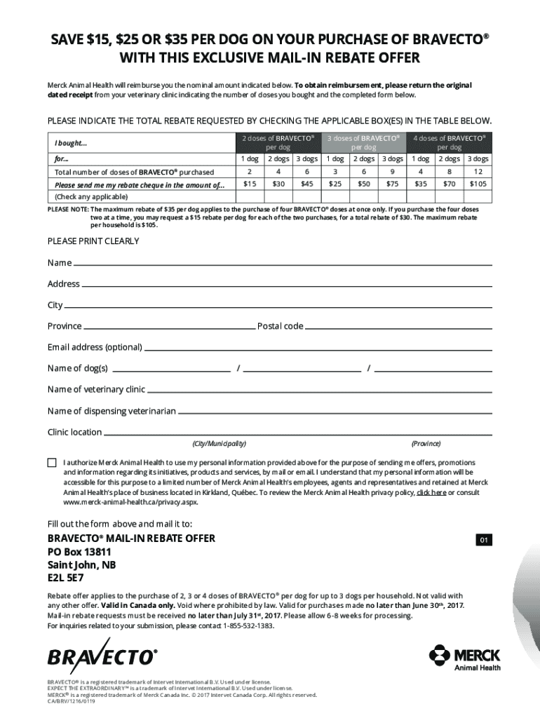 One way to save on your Bravecto purchase is by taking advantage of rebates. By using the Bravecto Rebate Form 2025 Printable, you can get a discount on your next purchase of this trusted flea and tick treatment for your pet.