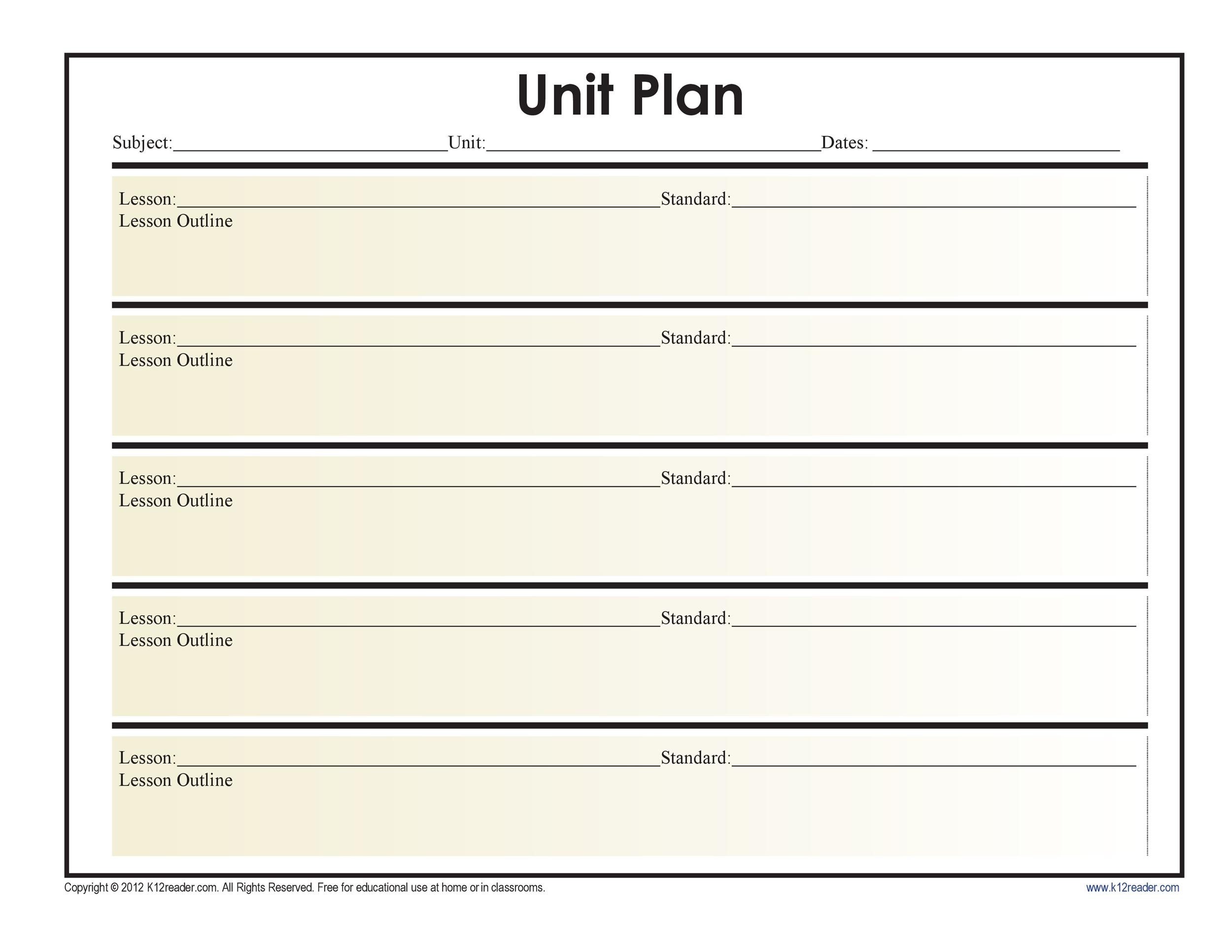 Free Printable Unit Plan Templates Word PDF