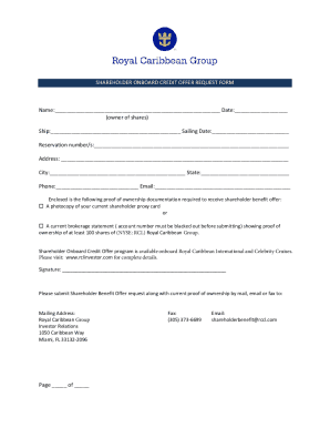 Make sure to read the instructions carefully before filling out the form to ensure that all information is accurate. Carnival values its shareholders and wants to make sure you receive the benefits you deserve. Take advantage of this opportunity to enhance your cruise experience with Carnival’s special perks.