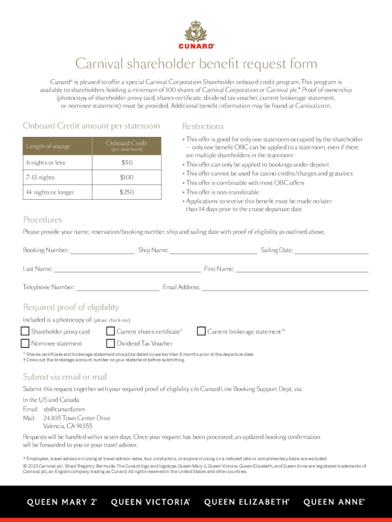 Carnival Shareholder Benefit Request Form Fill Out Sign Online DocHub