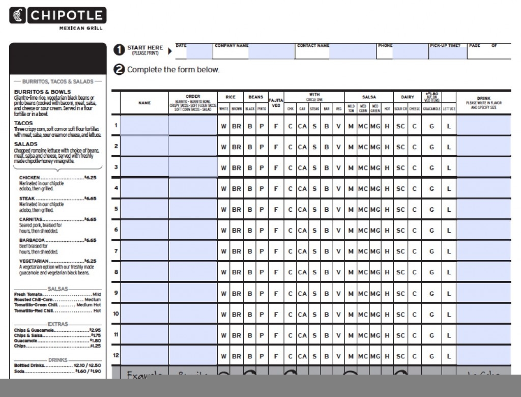 Ordering Made Easy with Chipotle Order Form 2025 Printable