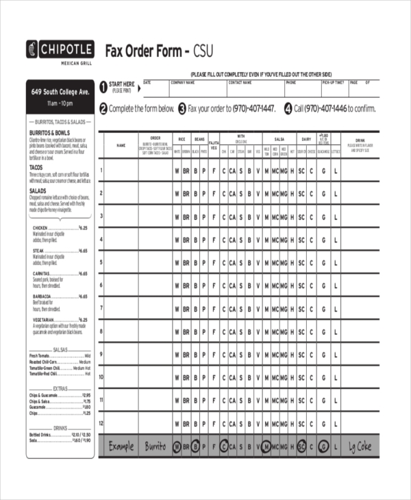 Download Chipotle Fax Order Form Adobe PDF Printable Application