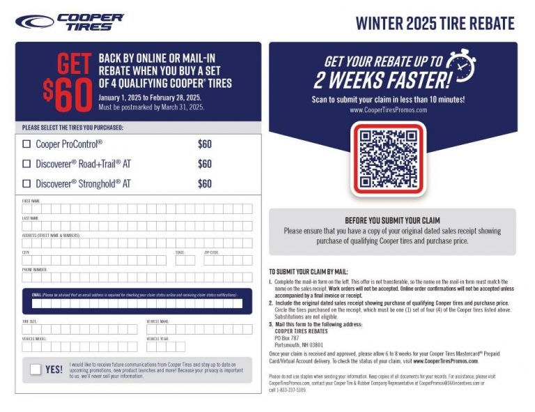 2025 – Cooper Tire Rebate Form 2025 Printable
