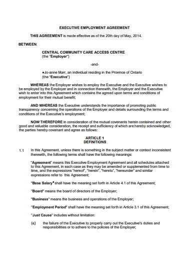 Executive Employment Agreement 10 Examples Format Pdf