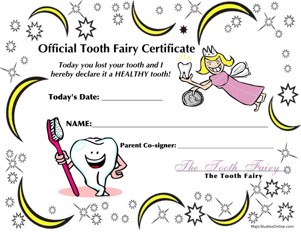 Printable Tooth Fairy Certificate For Boy Or Girl