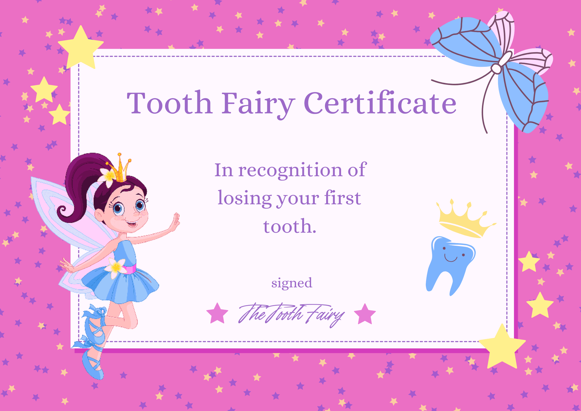 Download our free First Tooth Fairy Certificate today and create a magical moment that your child will remember forever. Celebrate this milestone in a special way and make losing teeth a little less scary and a lot more fun!