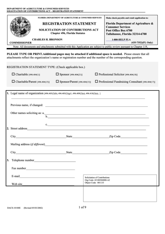 Form Dacs 10100e Registration Statement Florida Department Of