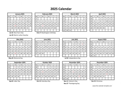 2025 Year Calendar Template With US Holidays Free Printable Templates