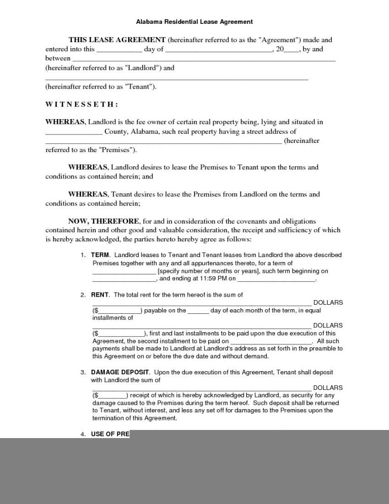 Free Printable Alabama Residential Lease Agreement Printable