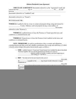 Free Printable Alabama Residential Lease Agreement