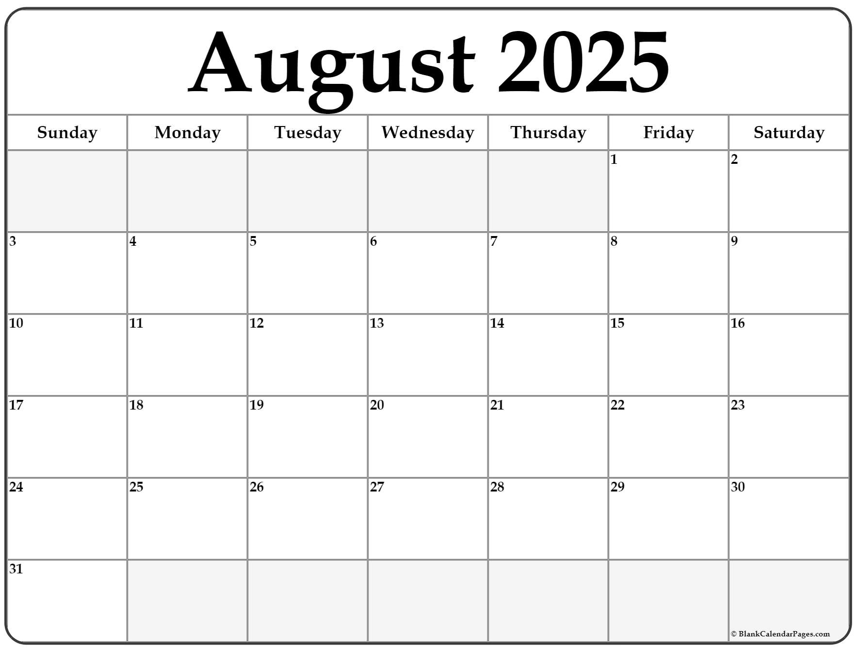 Free Printable August Calendar 2025 Blank Delilah Ellisa