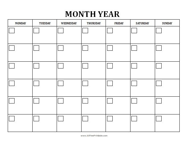Blank Monthly Calendar Free Printable