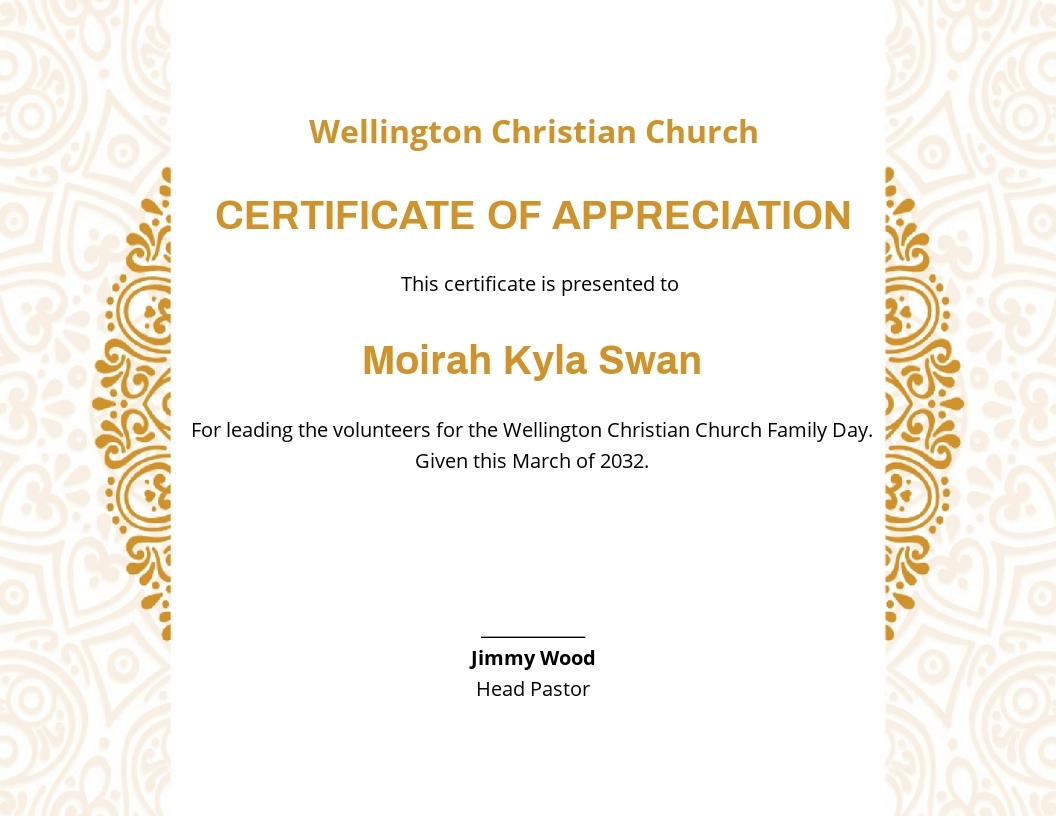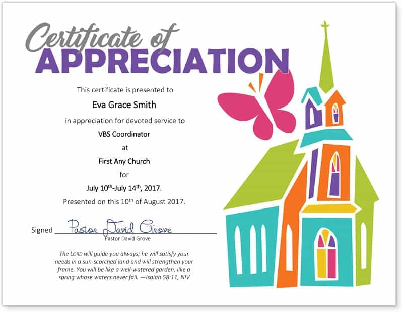 Church Certificate Of Appreciation Template