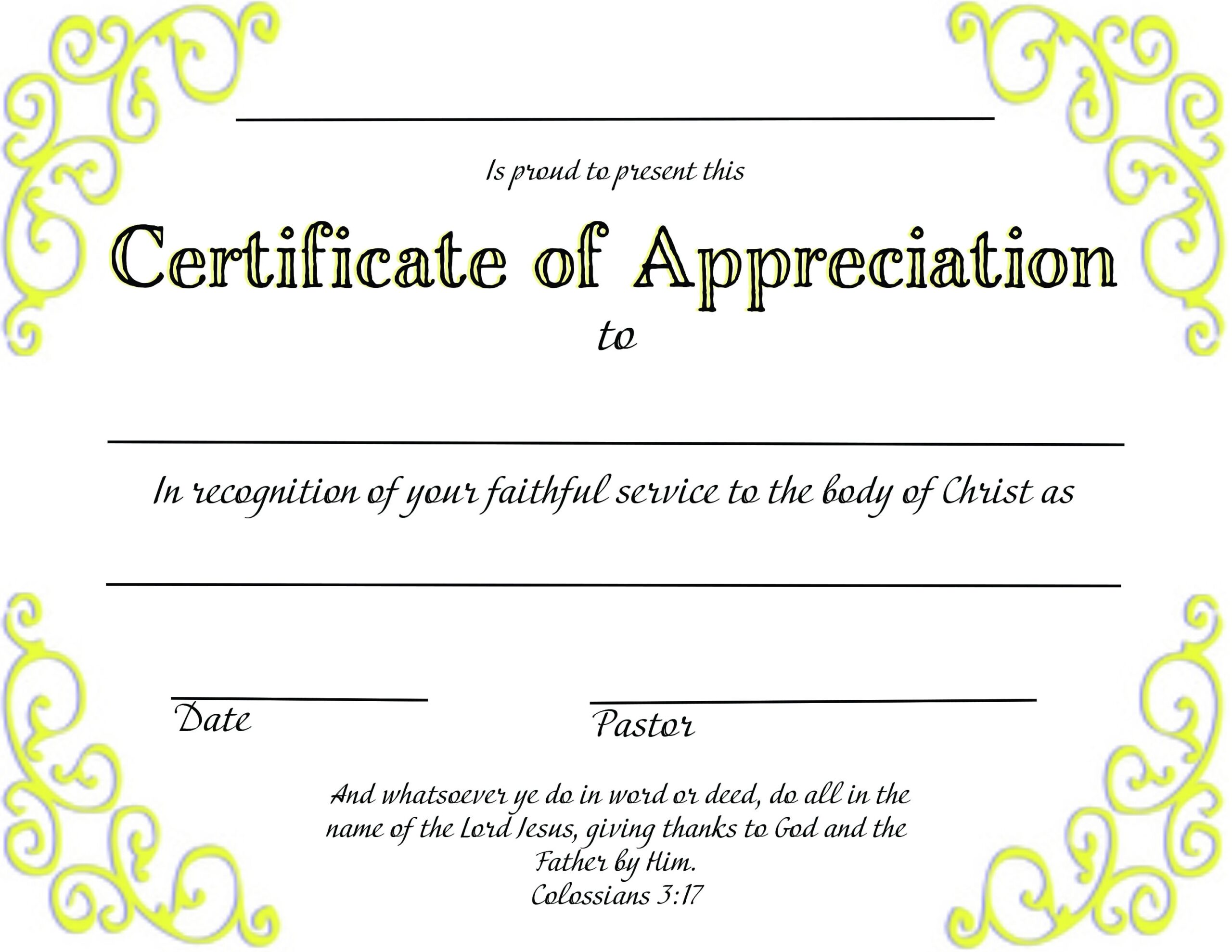 2025 – Free Printable Certificates Of Appreciation For Church