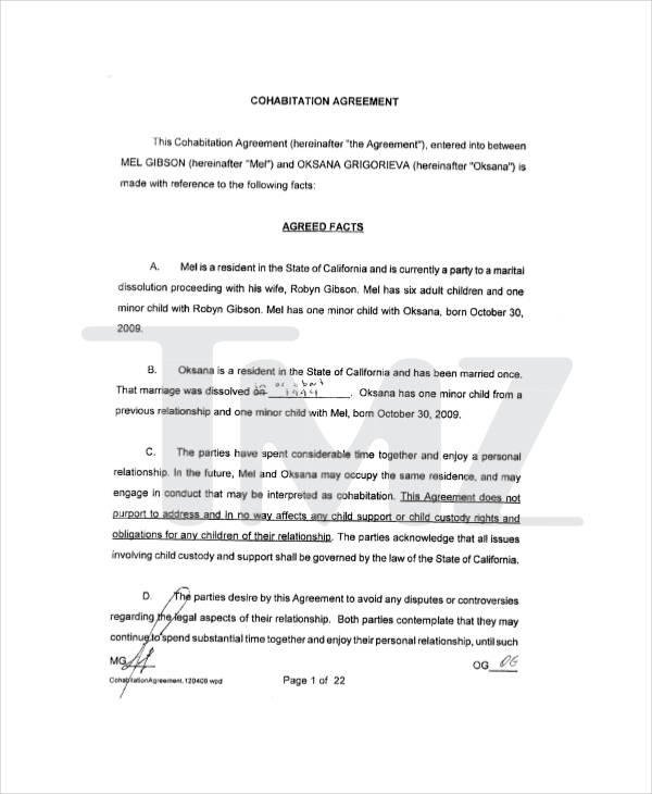 Cohabitation Agreement Template 8 Free Word PDF Format