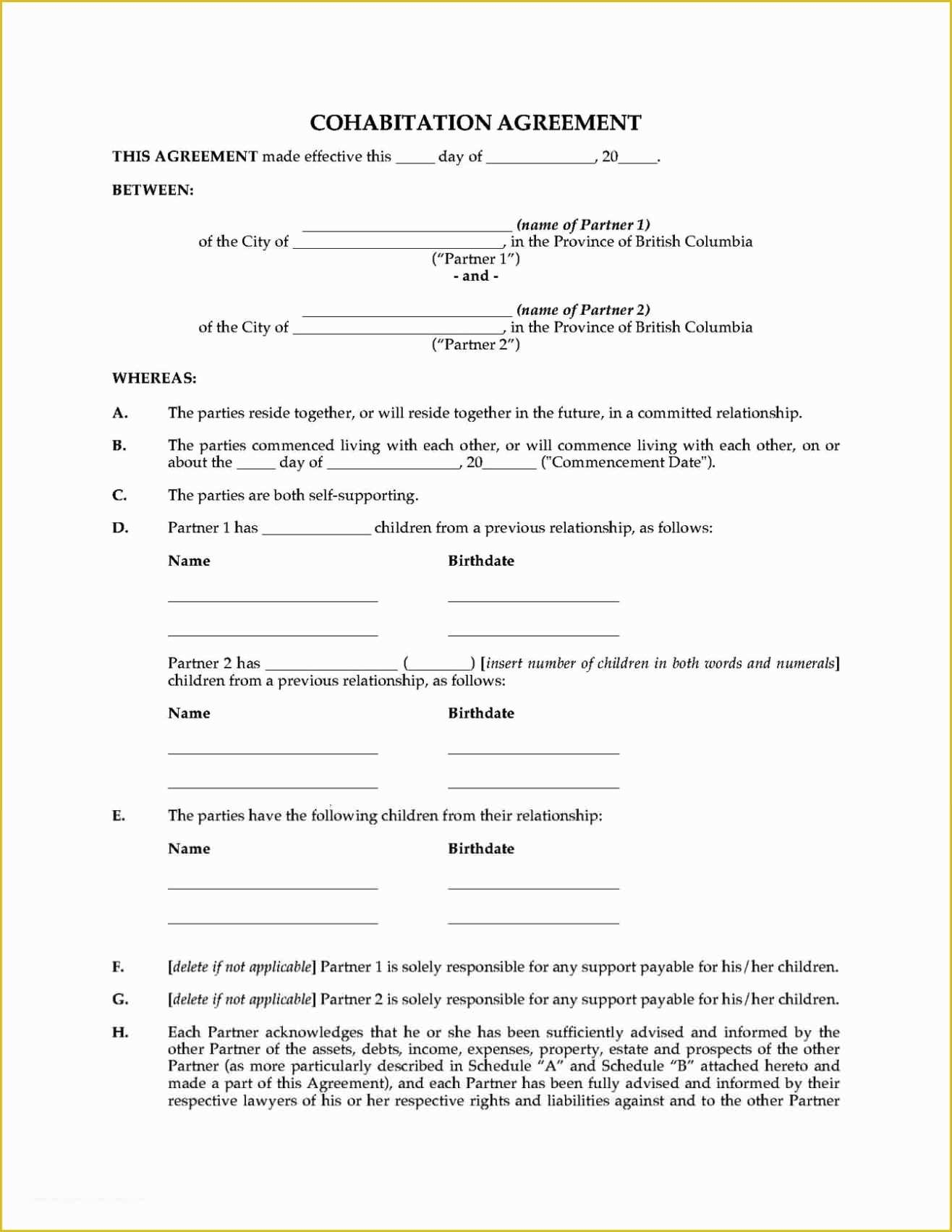 Living Together Agreement Template Free Of Free Printable Cohabitation