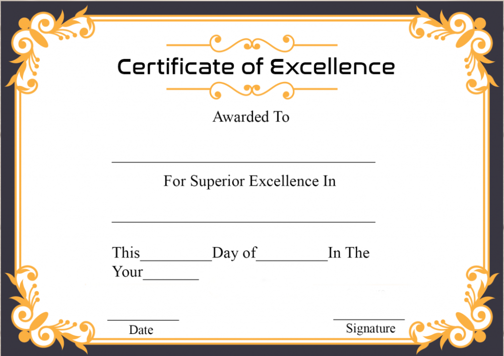 Free Printable Certificate Of Excellence Template With Regard To