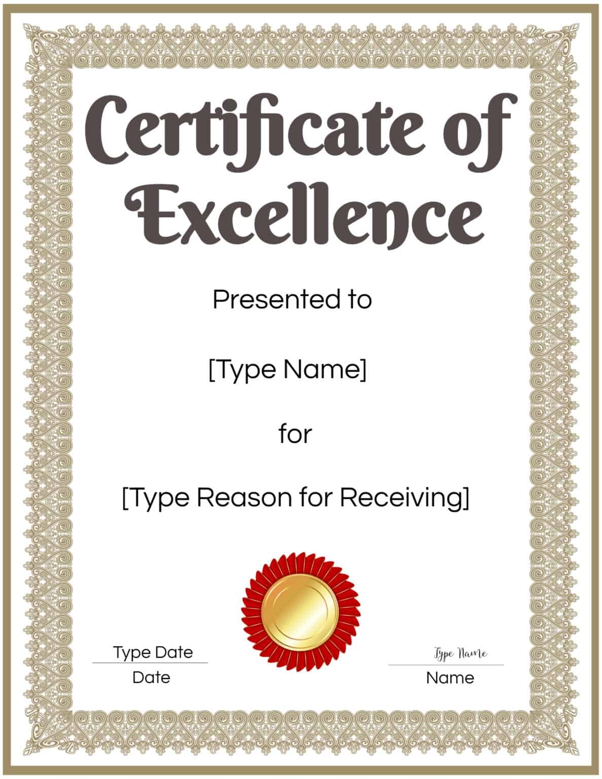 Customize Your Free Printable Excellence Certificate