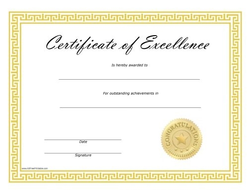 Free Printable Excellence Certificates