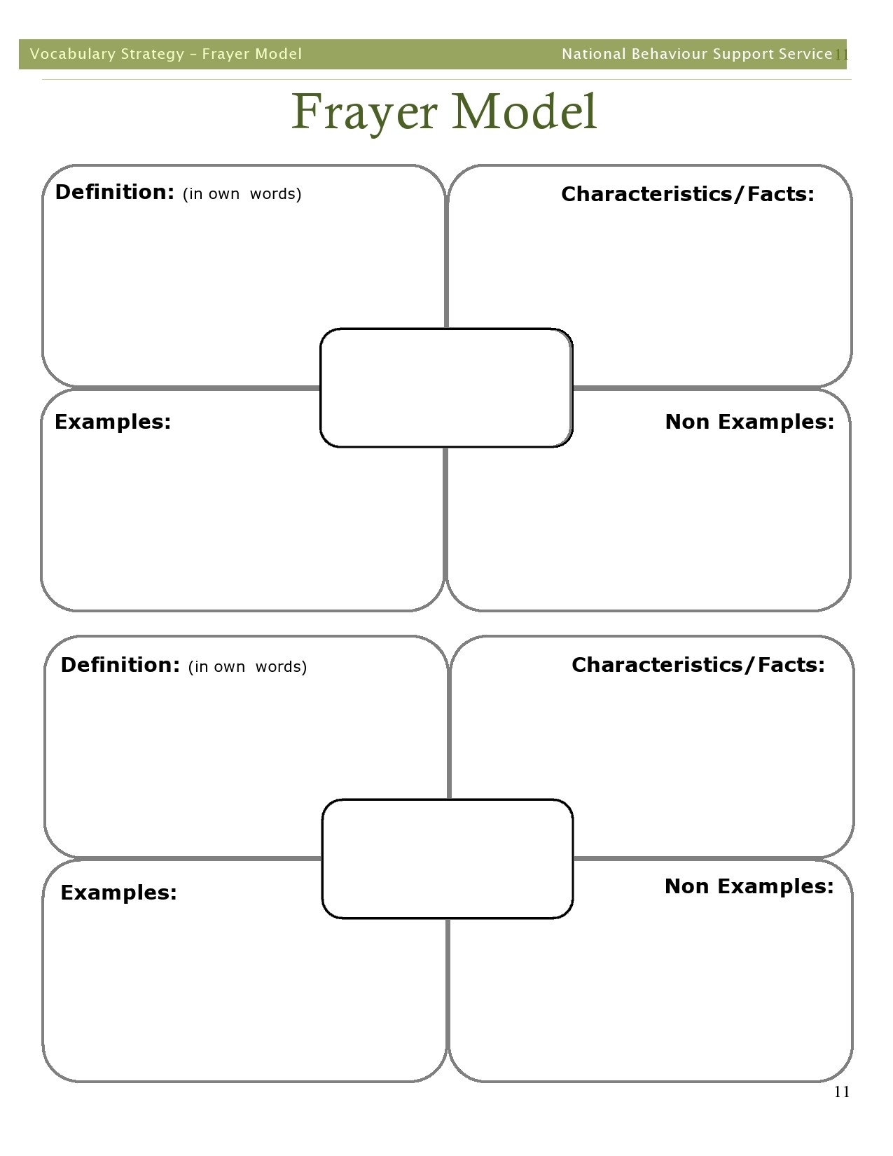 Whether you’re studying vocabulary words, mathematical concepts, scientific theories, or historical events, the Frayer model can help you deepen your understanding and retention of the material. It’s a versatile tool that can be adapted to suit your specific learning needs and goals.