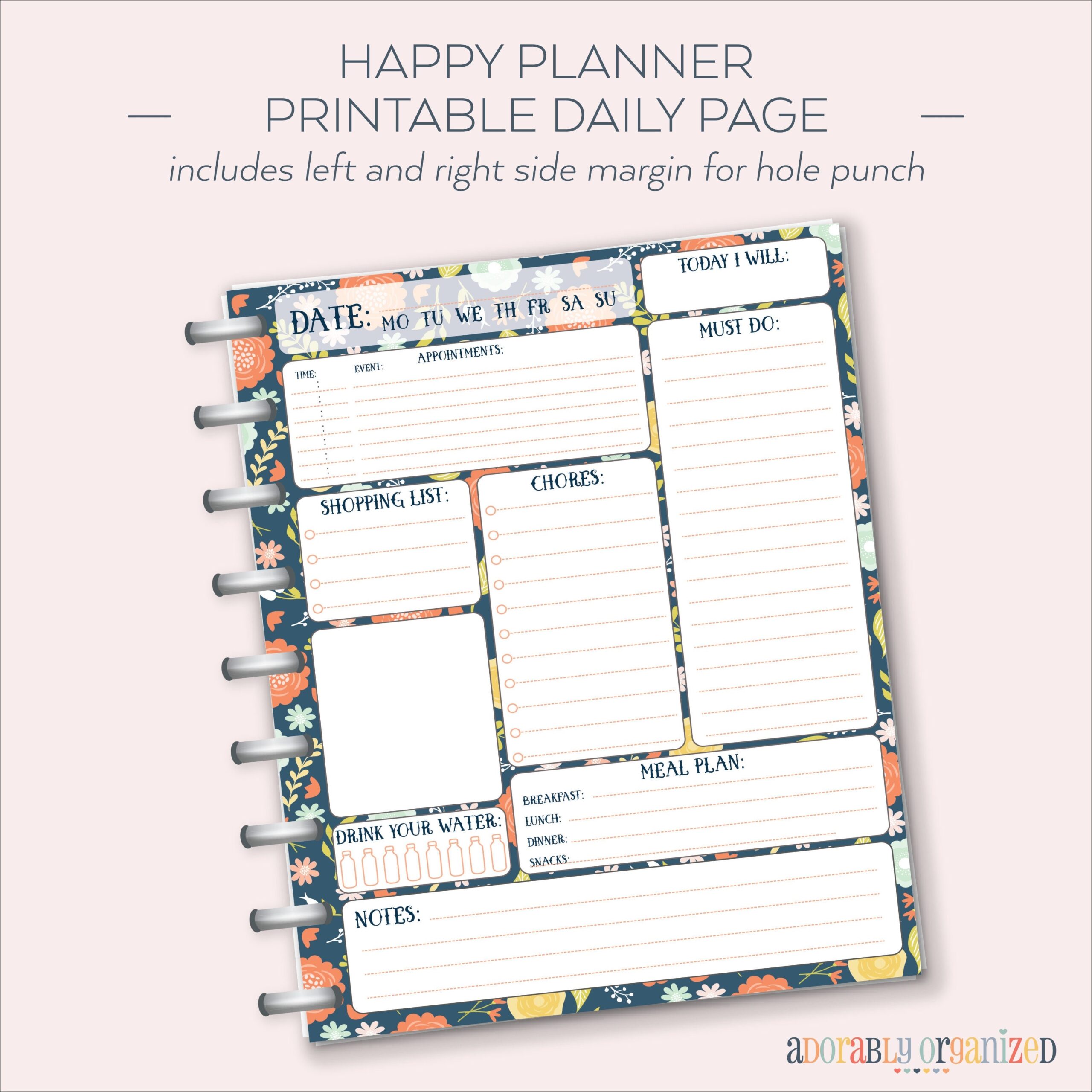 HAPPY PLANNER PRINTABLE Daily Planner Refills Inserts 7 X 9 25