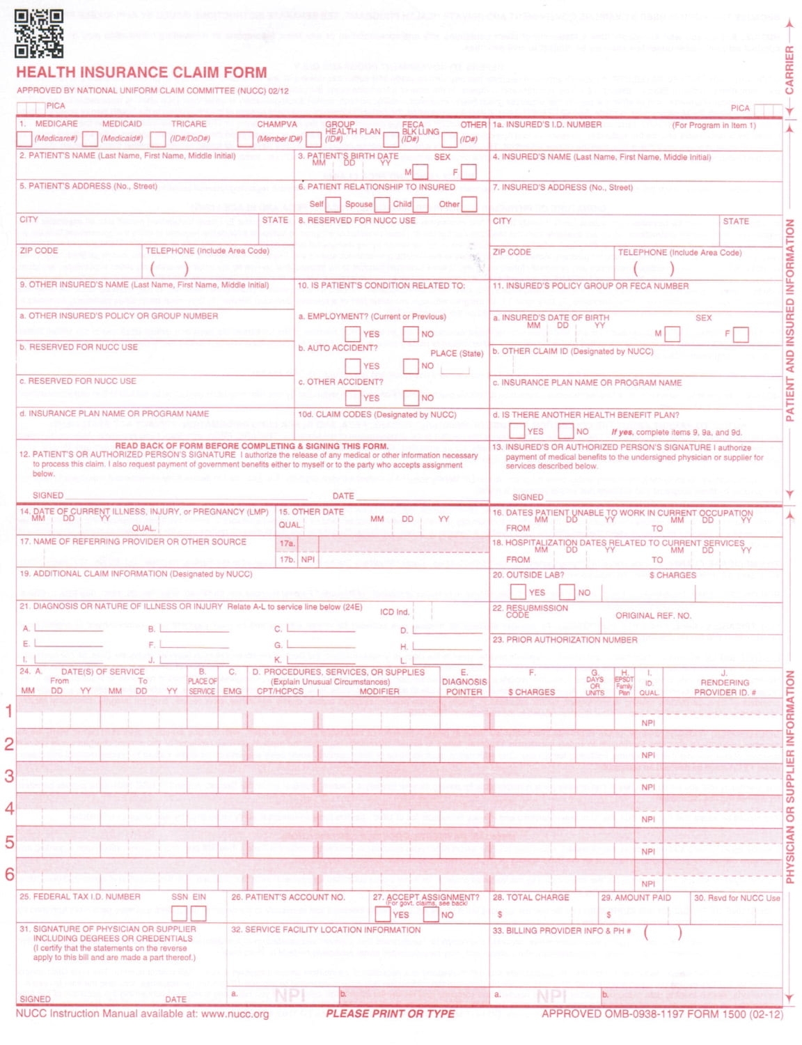 Free Printable HCFA 1500 Claim Form