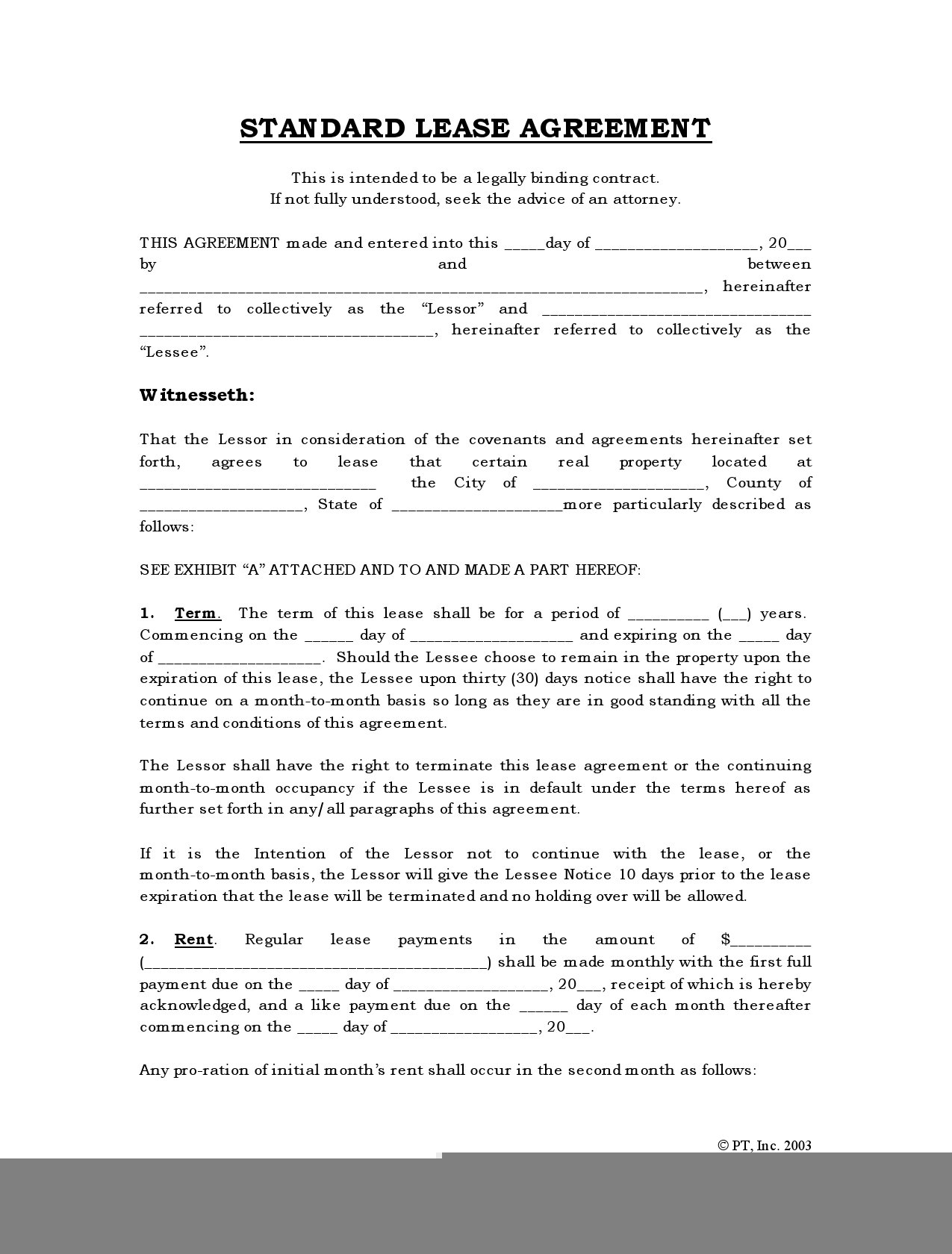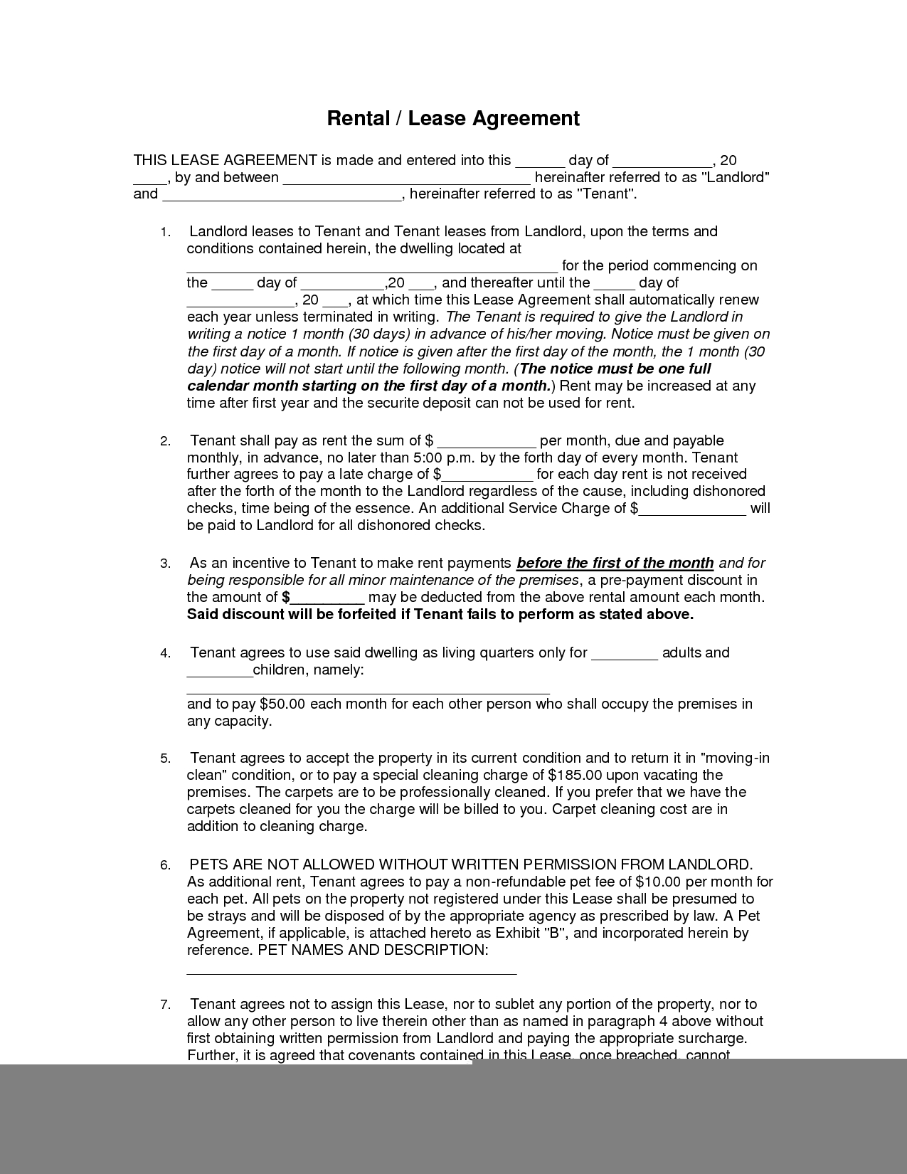 Blank Lease Agreement Free Printable Free Printable