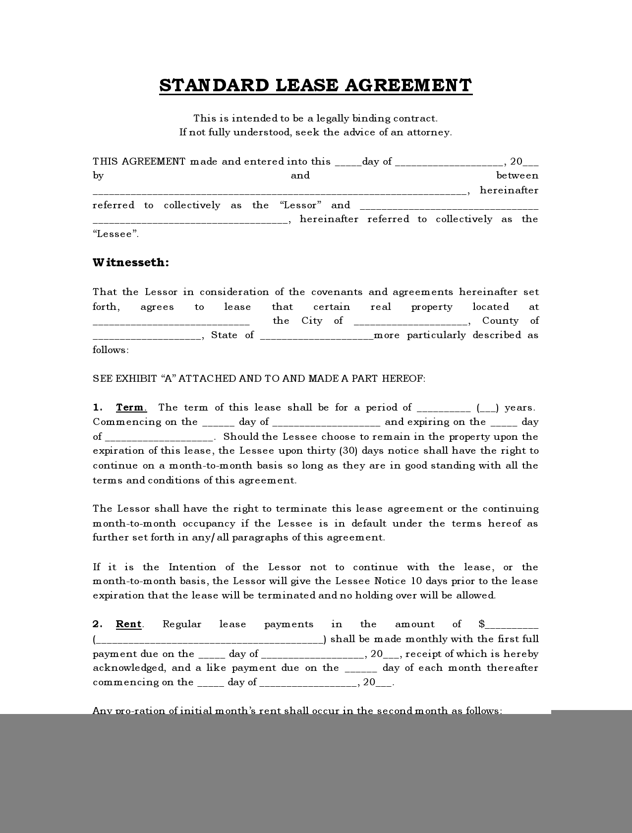 Free Printable Lease Agreement