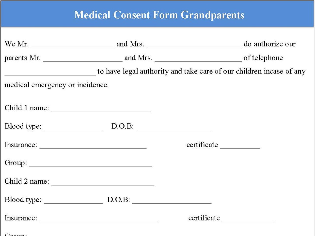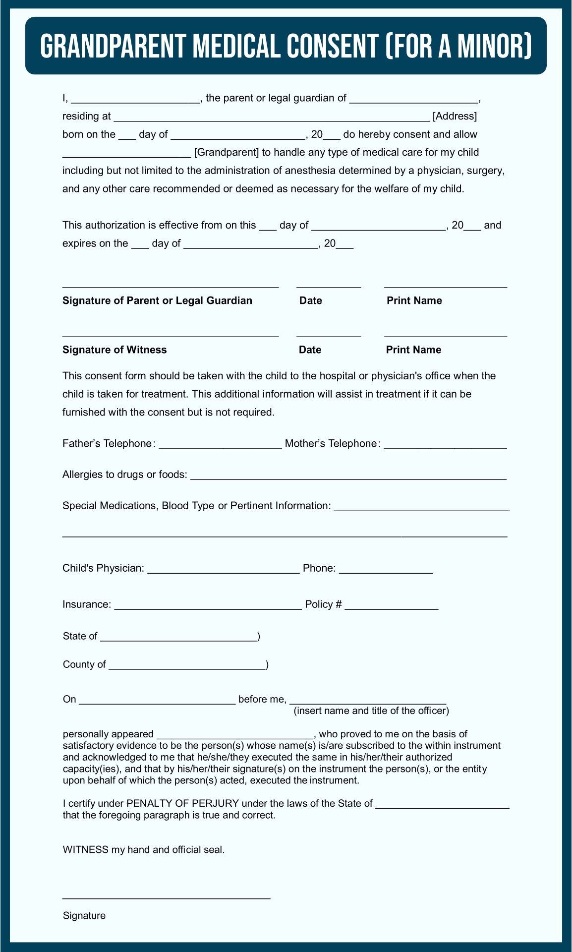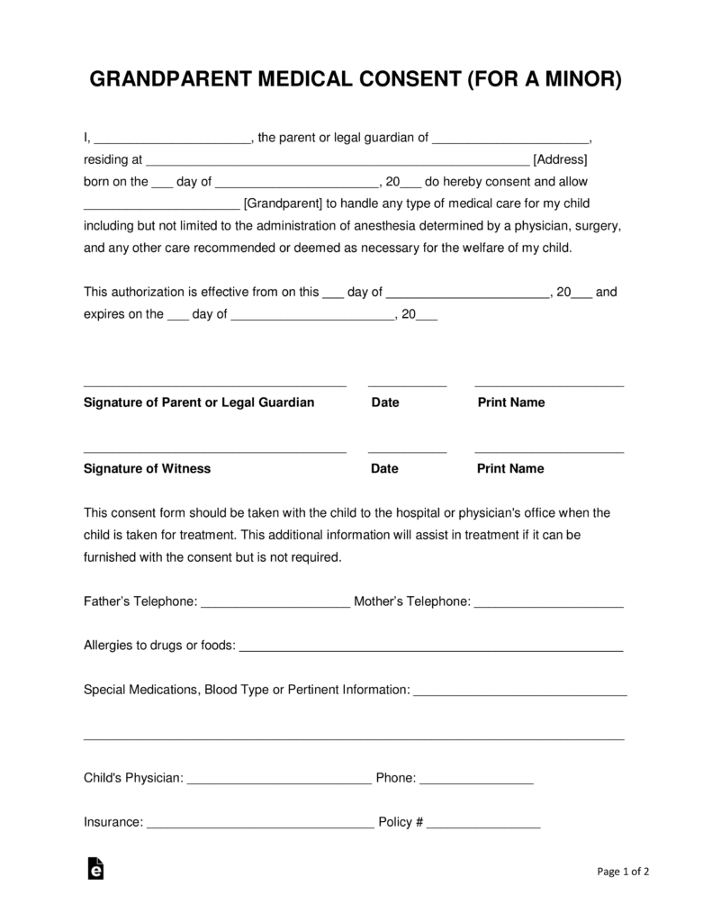 Grandparents Medical Consent Form Minor Child EForms