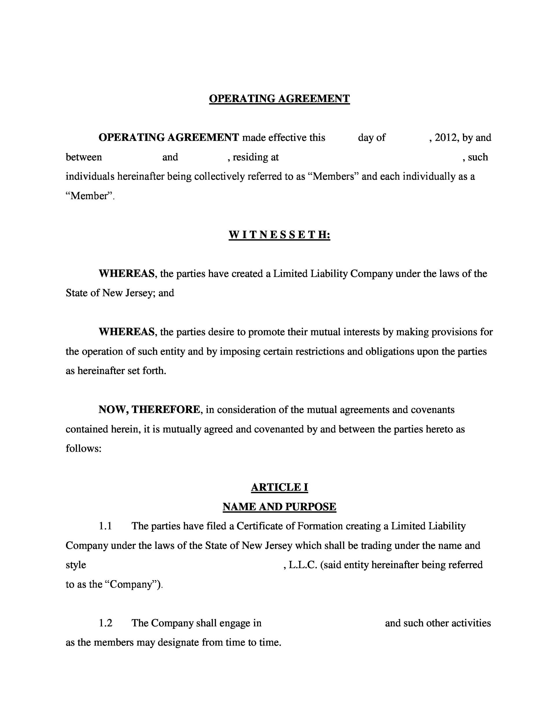 Free Printable Operating Agreement