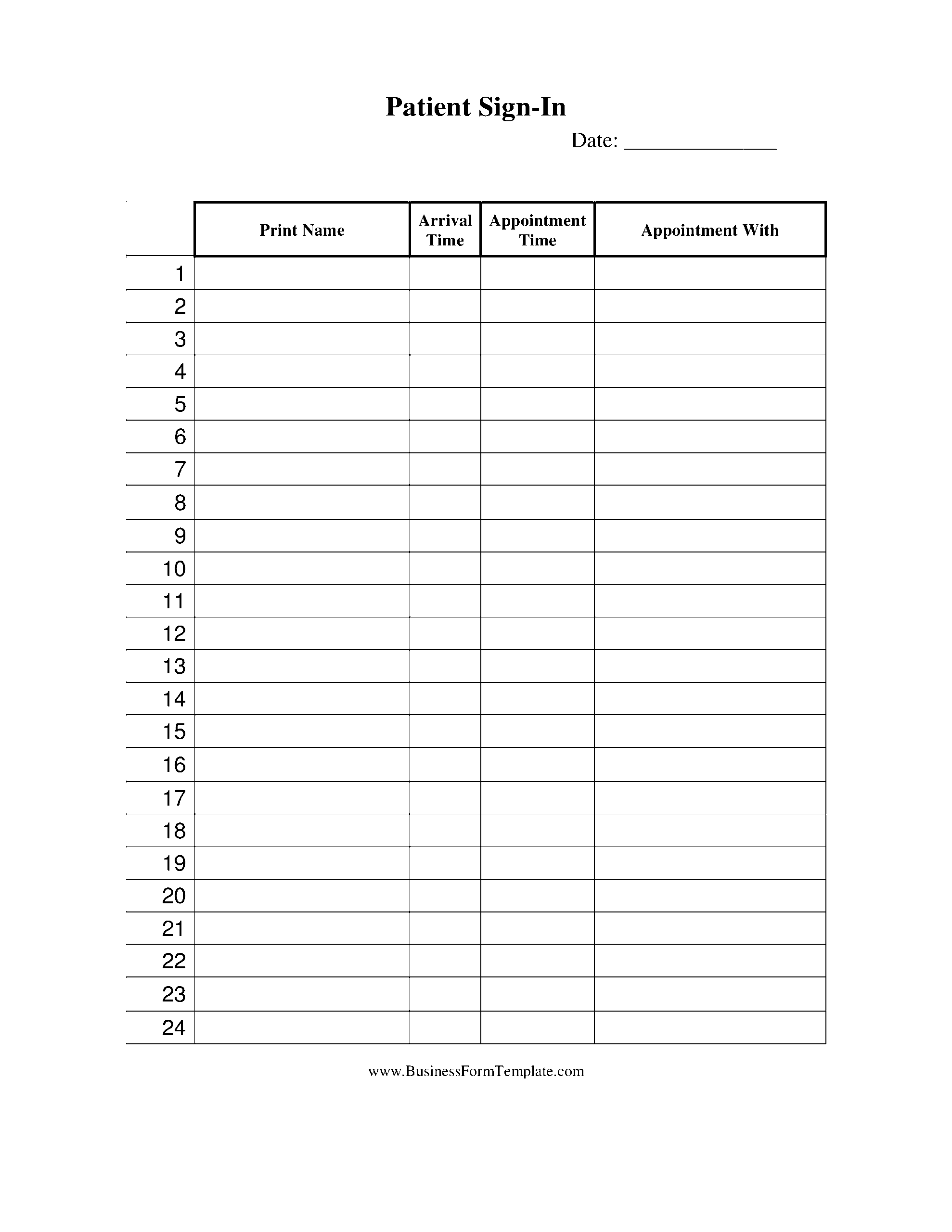 Medical Patient Sign In Sheet Templates At Allbusinesstemplates