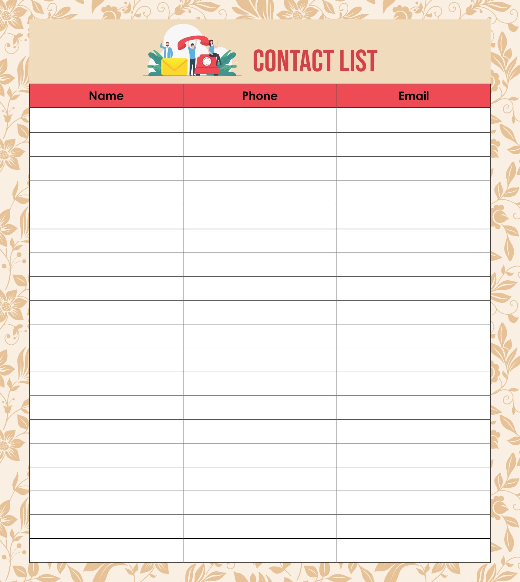 Phone Contact List Template 10 Free PDF Printables Printablee
