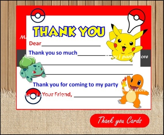 Pokemon Cards Pokemon Thank You Cards Instant Download