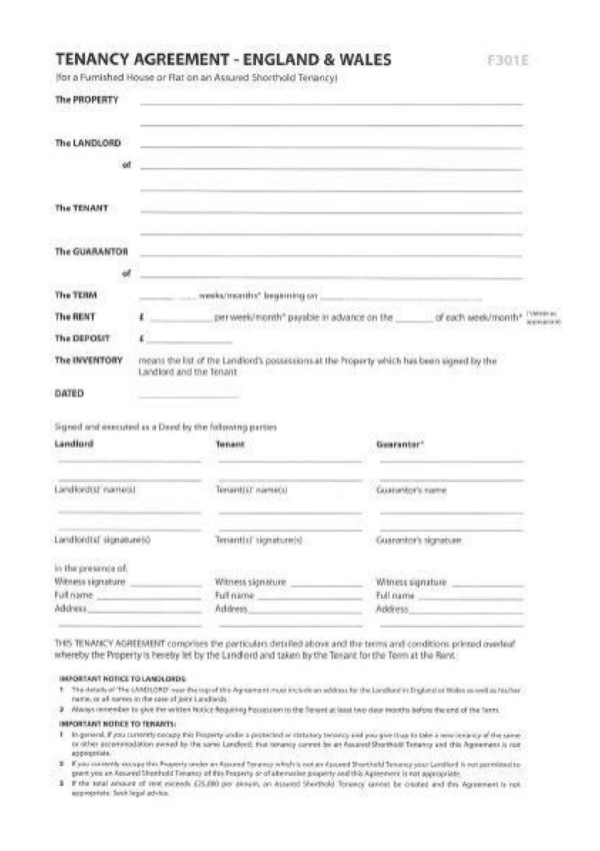 Tenancy agreement england and wales template tenancy agreement england