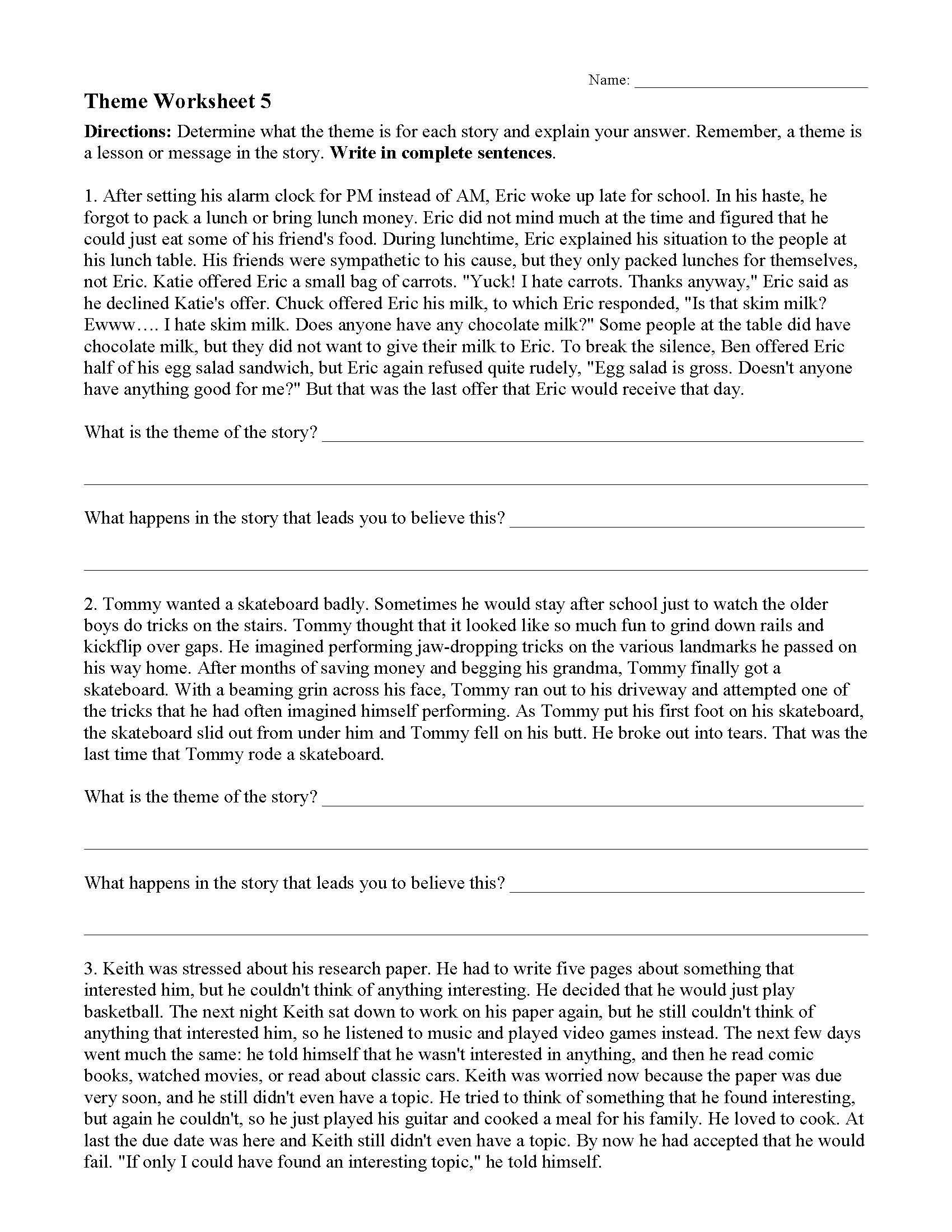 Theme Printables Theme Worksheets Theme Central Message Teaching