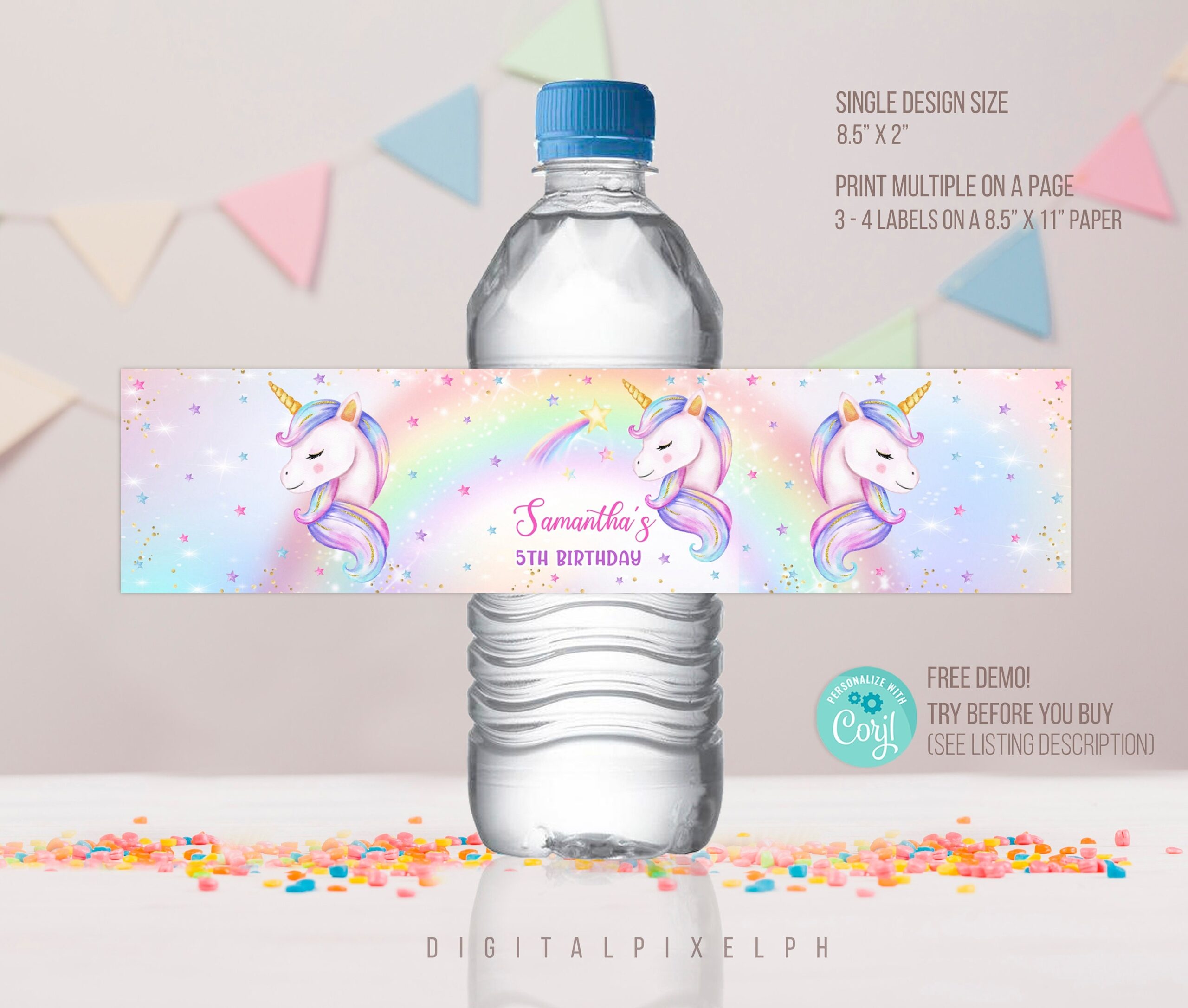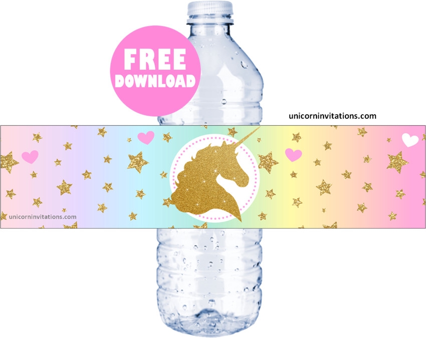 Free Printable Rainbow Unicorn Water Bottle Labels Birthday Buzzin