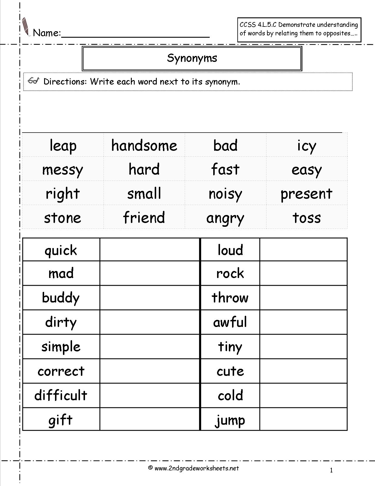 Free Printable Worksheets On Synonyms And Antonyms
