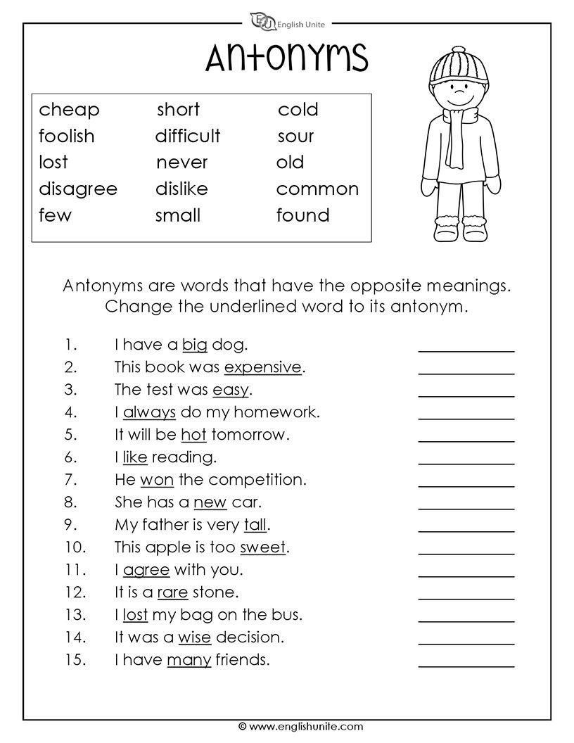 Printable Synonym And Antonym Worksheets