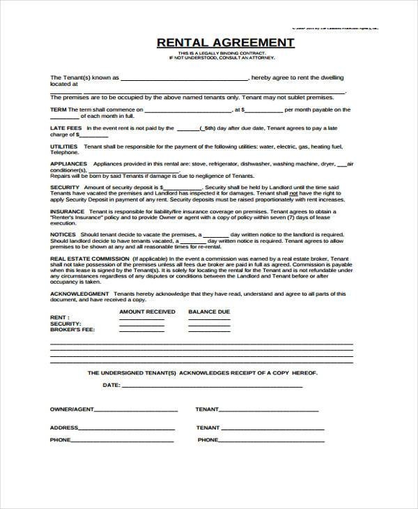 Download Free Basic Rental Agreement Or Residential Lease Printable