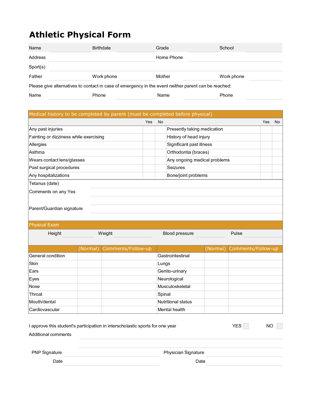 Having a physical form on hand is not only convenient but also essential for ensuring the safety and well-being of athletes. By filling out the form accurately, you can provide crucial information to medical professionals in case of emergencies or injuries during sports activities.
