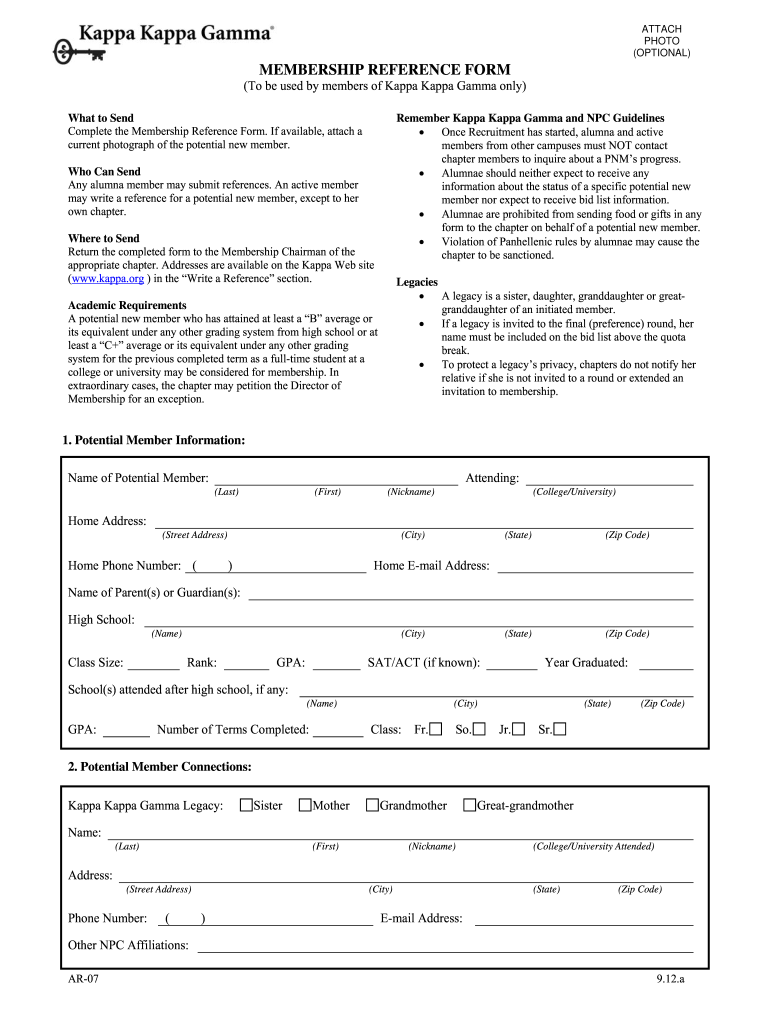 Kappa Kappa Gamma Rec Form Printable Printable Forms Free Online