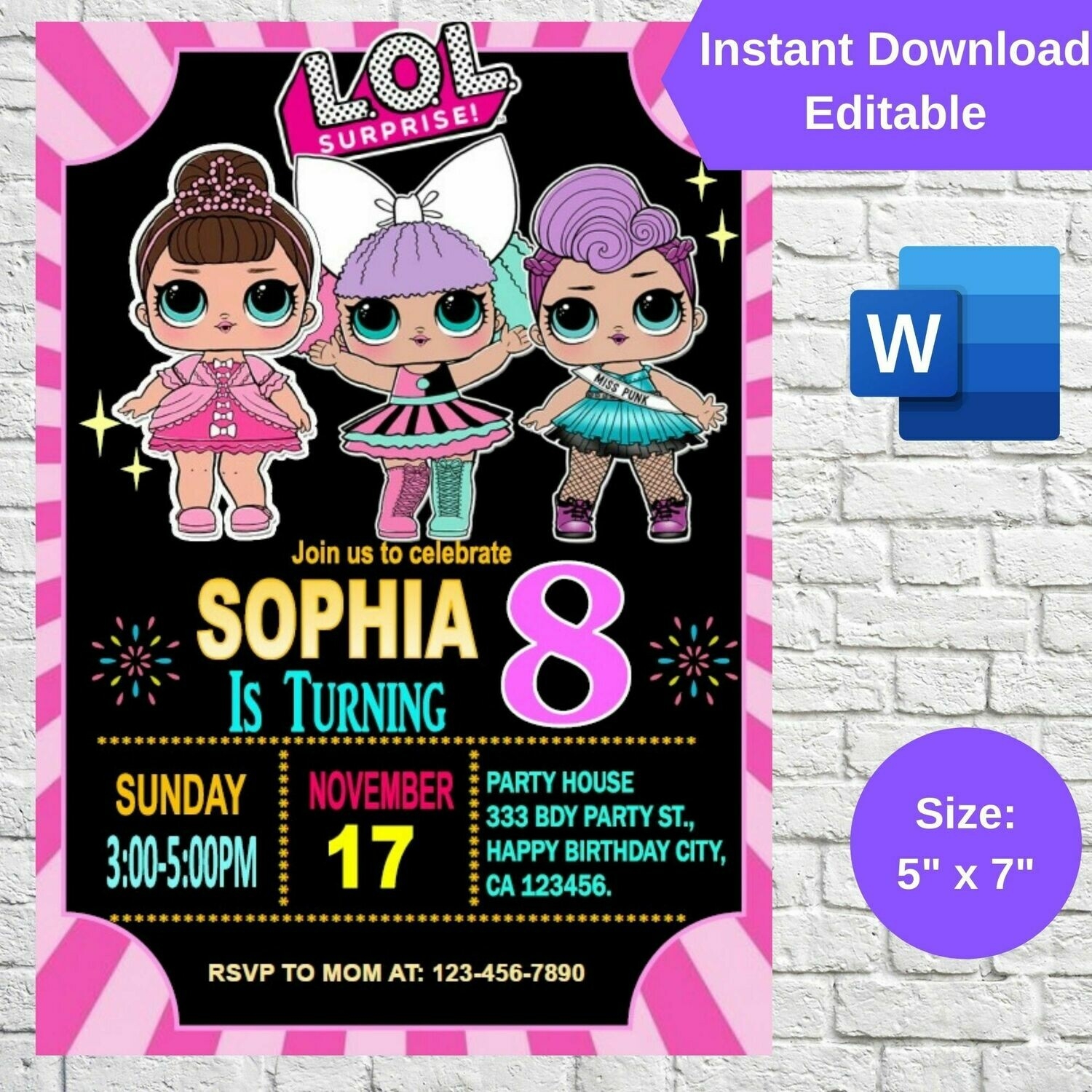 LOL Surprise Dolls Birthday Invitation Printable Bobotemp