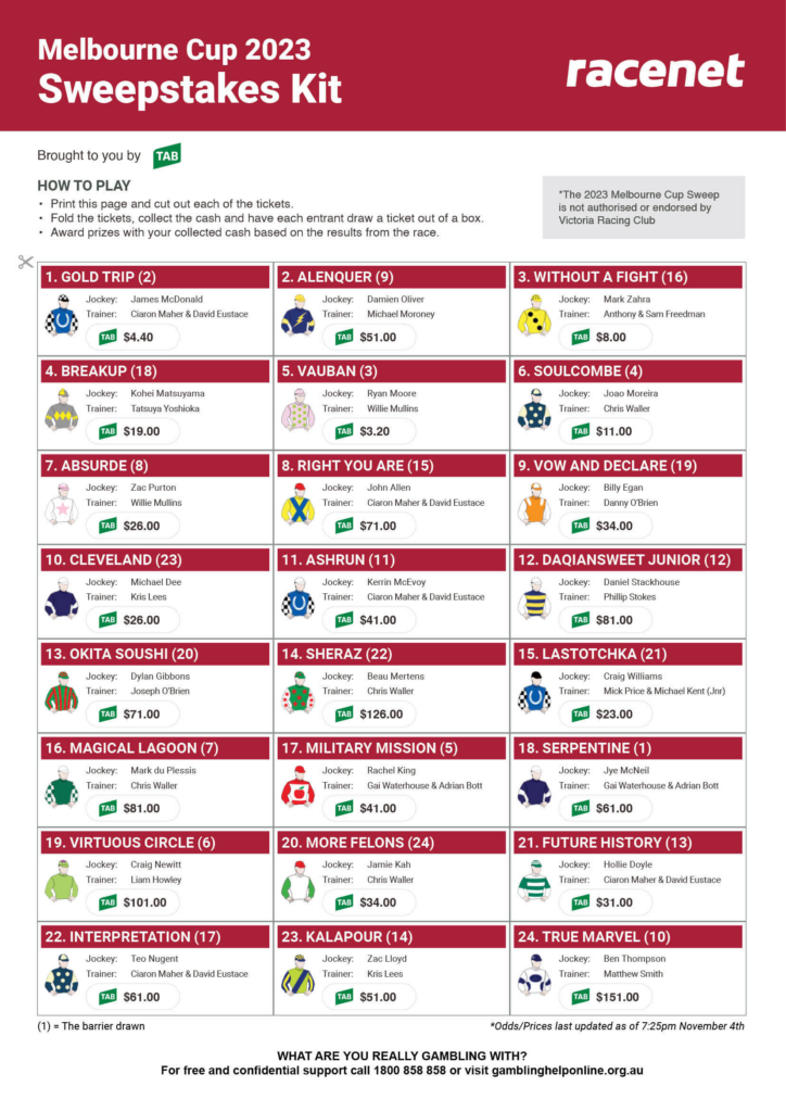 So, whether you’re attending the Melbourne Cup in person or watching from home, make sure to download a printable form guide to enhance your racing experience. With all the essential details in one place, you’ll feel like a pro as you cheer on your chosen horse to victory!